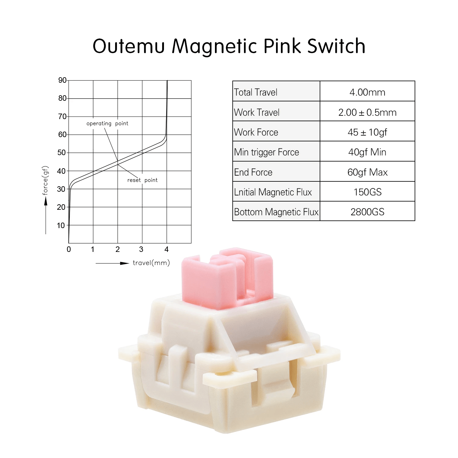 In comparison to traditional mechanical switches with fixed trigger and reset points, magnetic switches offer adjustable trigger and reset points for faster triggering and resetting speeds. By setting the trigger and reset points in the driver, users can easily reset the key by lifting the finger slightly and continuously trigger it by pressing down.