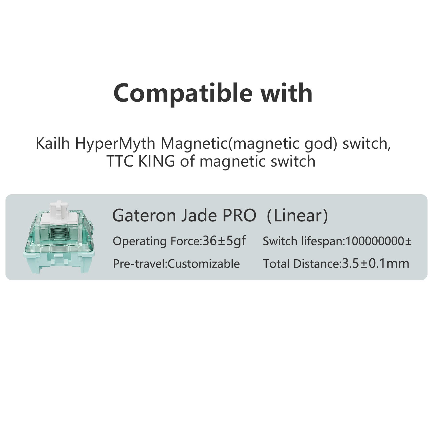 • Compatible Magnetic Switch types : Gateron Jade pro, Kailh HyperMyth Magnetic(magnetic god) switch, TTC KING of magnetic switch