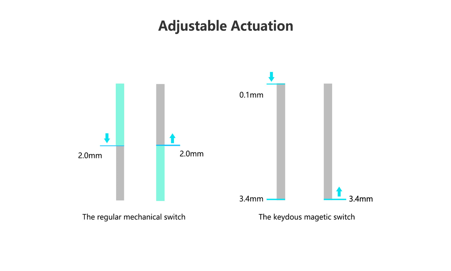 • ZERO deadzone, Adjustable actuction from 0.1mm to 3.4mm with precision of 0.1mm.